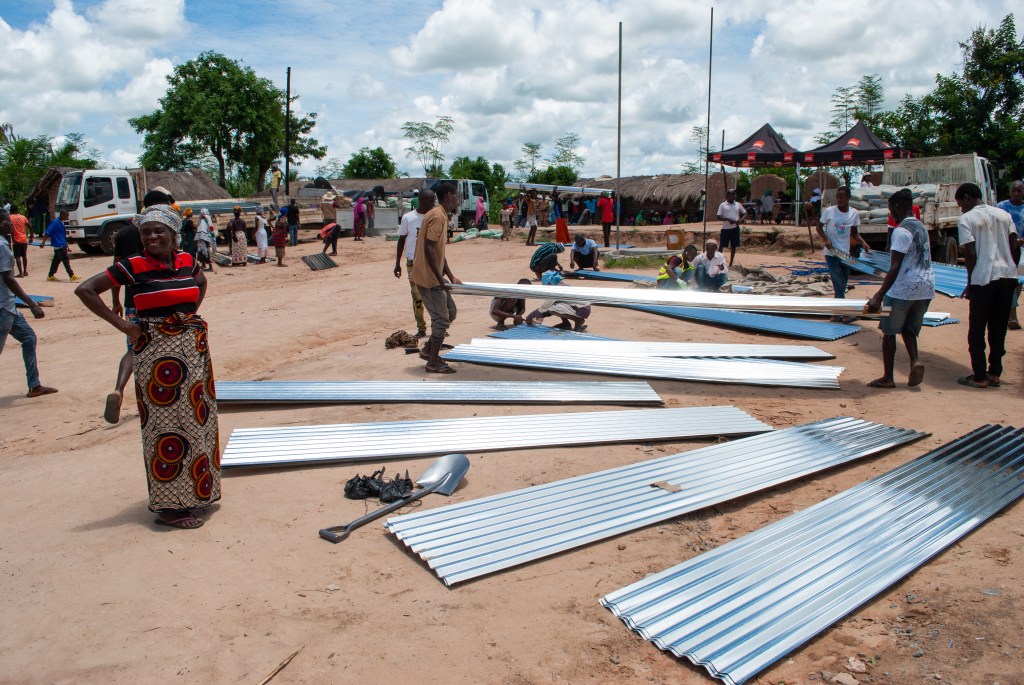 Sheets of corrugated iron being laid out in Impire village. These items are part of a package of assistance provided by Norwegian Refugee Council, which is helping communities respond to the challenges posed by the ISIS-linked insurgency in Cabo Delgado as well as the effects of cyclones.